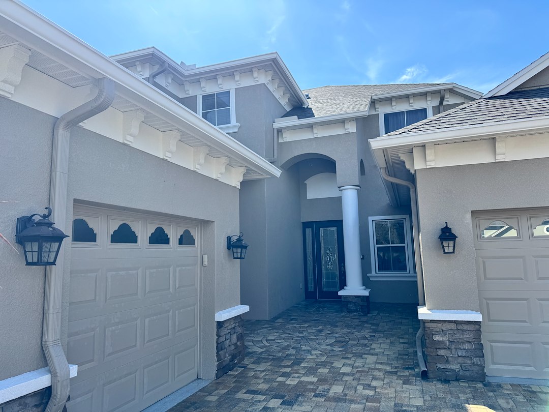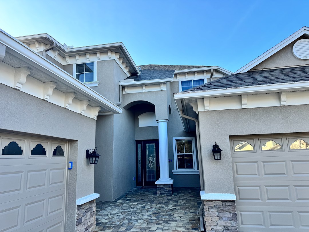 This recent exterior house washing project was completed in Land O’ Lakes, Florida, where the home had begun developing typical organic buildup on the siding, soffits, and trim.